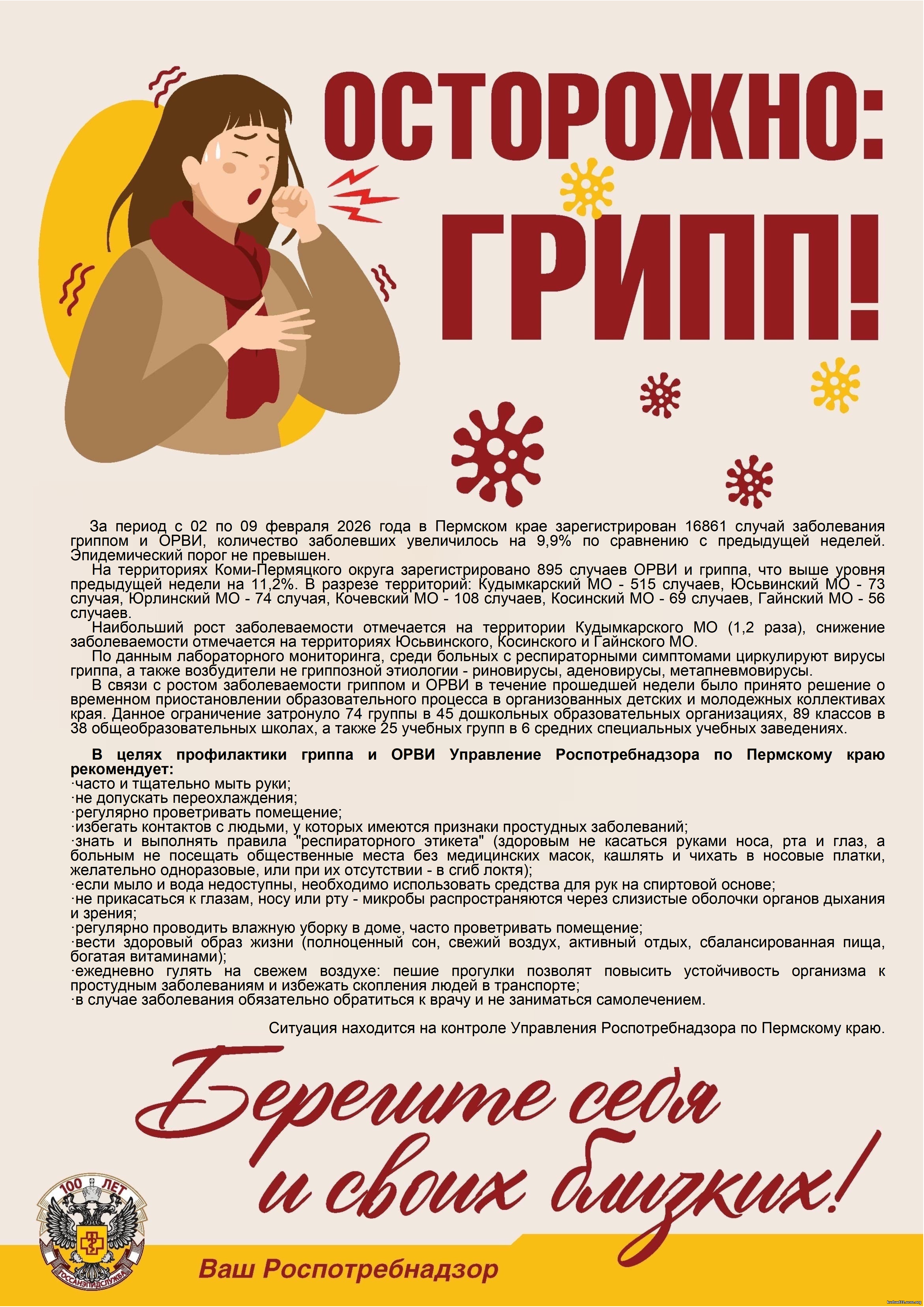 Специалисты Управления Роспотребнадзора по Пермскому краю осуществляют еженедельный мониторинг заболеваемости гриппом и ОРВИ, а также за циркуляцией возбудителей инфекции.
